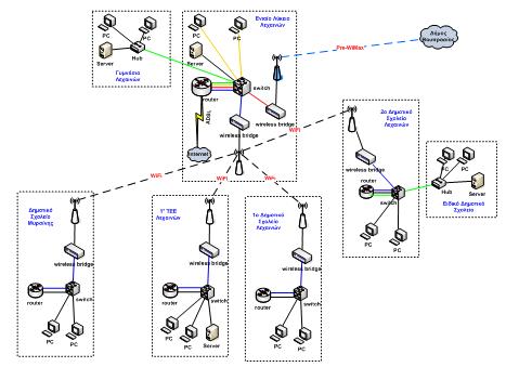 Αναλυτικό σχεδιάγραμμα δικτύωσης (ασύρματο δίκτυο στο Δήμο Λεχαινών)
